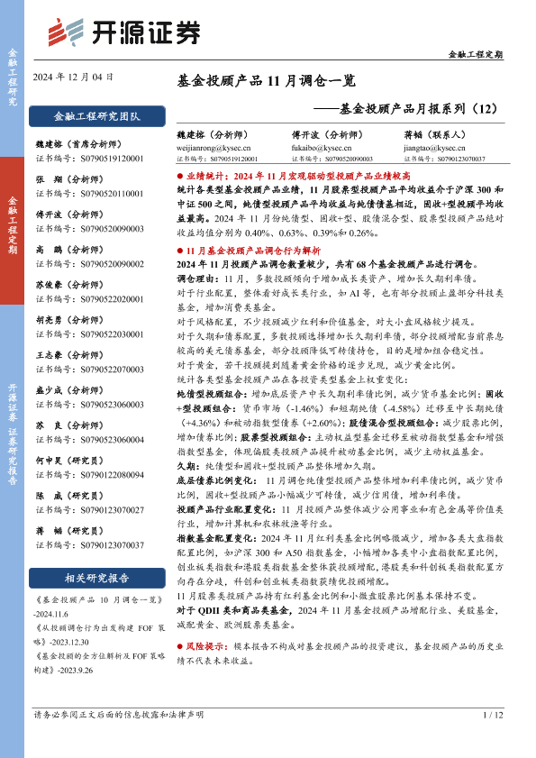 【开源证券】【20241204】基金投顾产品月报系列(12):基金投顾产品11月调仓一览-12页