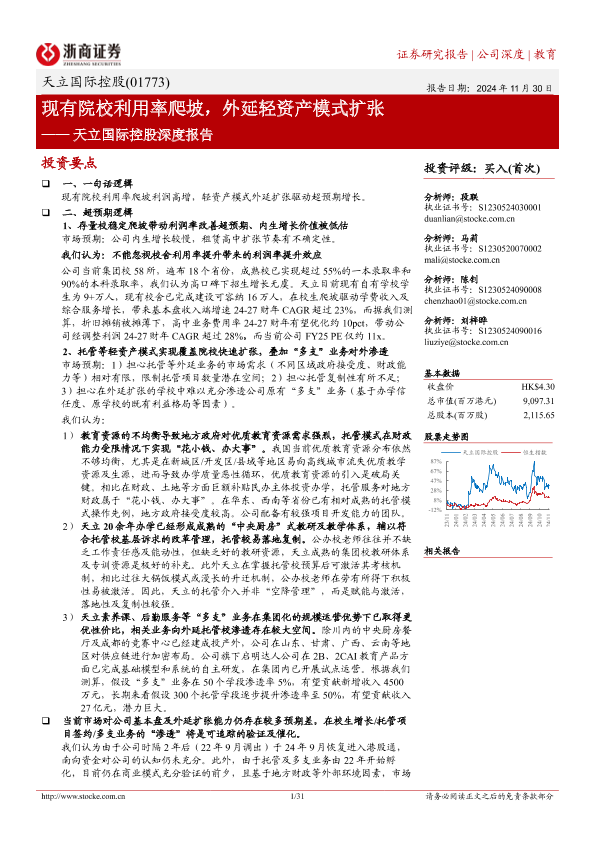 【浙商证券】【20241130】天立国际控股(01773.HK)深度报告:现有院校利用率爬坡,外延轻资产模式扩张-31页