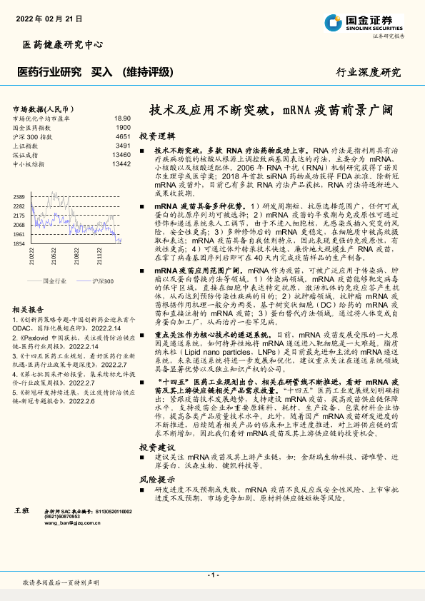 【国金证券】【20220221】医药行业:技术及应用不断突破,mRNA疫苗前景广阔-44页