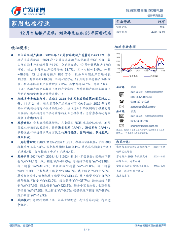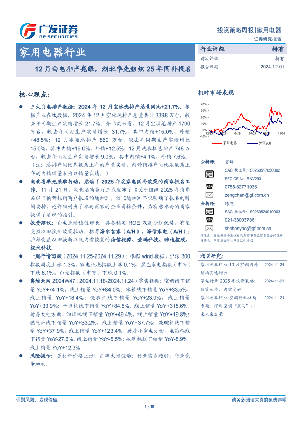 【广发证券】【20241201】家用电器行业:12月白电排产亮眼,湖北率先组织25年国补报名-18页
