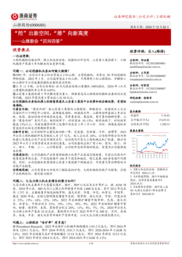 【浙商证券】【20241202】山推股份(000680)“四问四答”:“挖”出新空间,“推”向新高度-10页