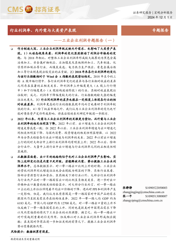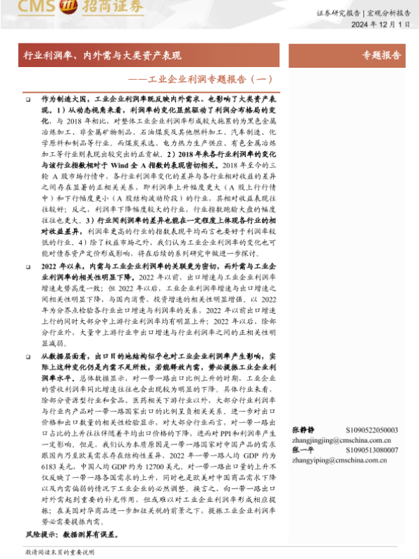 【海通证券】【20241201】工业企业利润专题(一):行业利润率、内外需与大类资产表现-16页