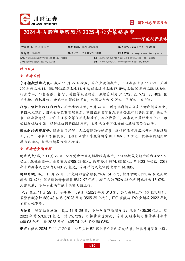【川财证券】【20241130】年度投资策略:2024年A股市场回顾与2025年投资策略展望-16页