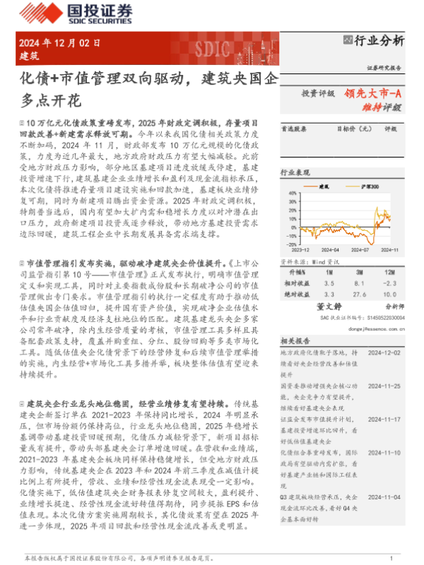 【国投证券】【20241202】建筑行业分析:化债%2b市值管理双向驱动,建筑央国企多点开花-21页
