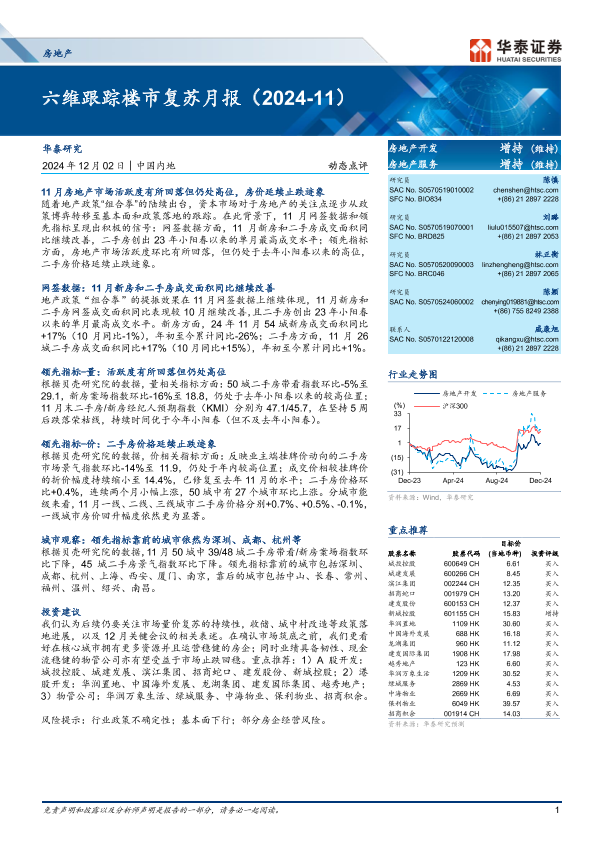 【华泰证券】【202411】房地产行业:六维跟踪楼市复苏月报(2024-11)-11页
