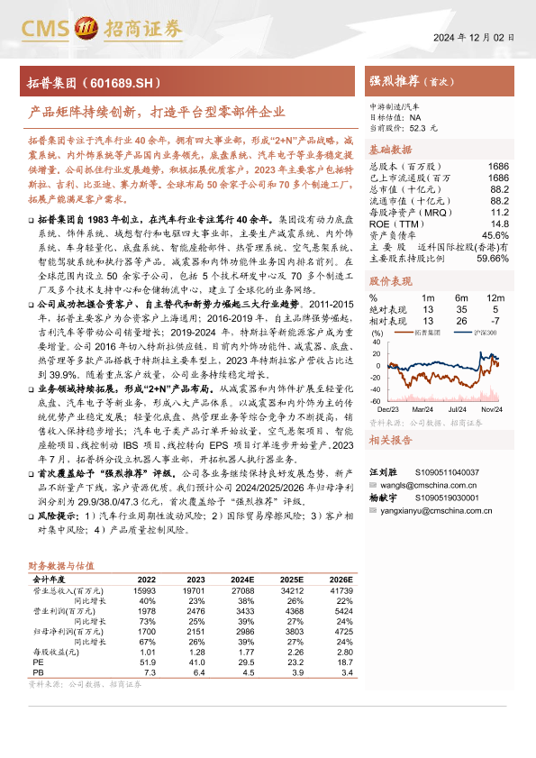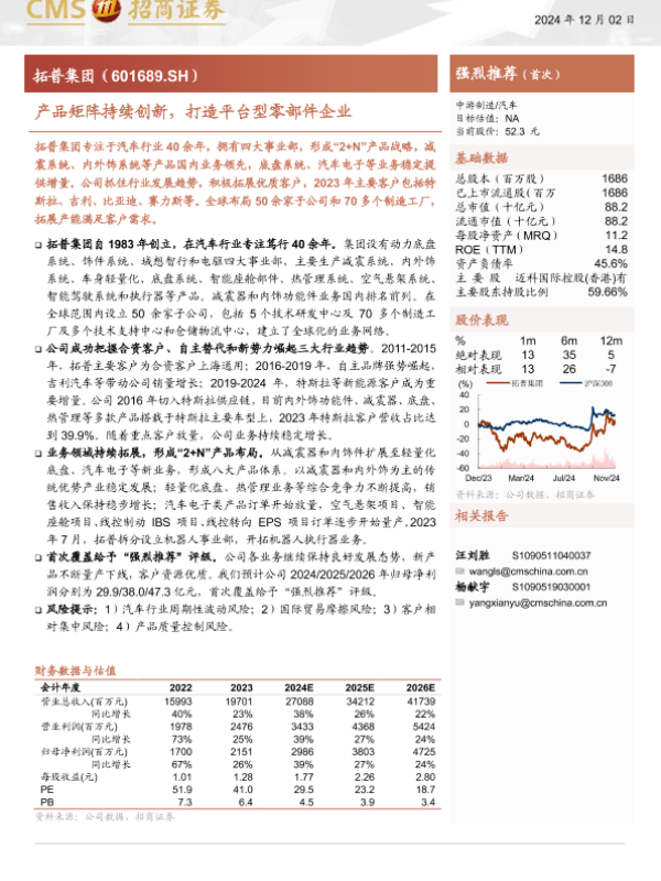 【海通证券】【20241202】拓普集团(601689)产品矩阵持续创新,打造平台型零部件企业-32页
