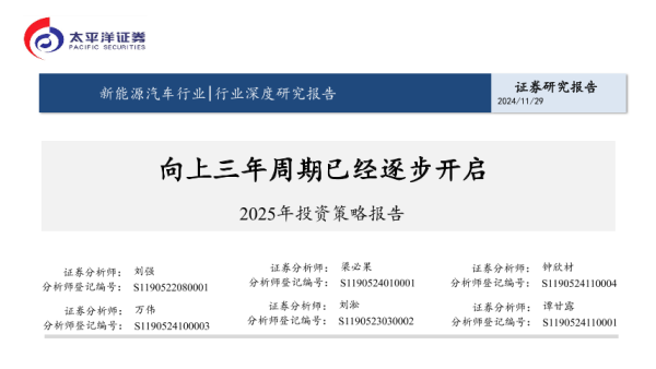 【太平洋证券】【20241129】新能源汽车行业2025年投资策略报告:向上三年周期已经逐步开启-26页