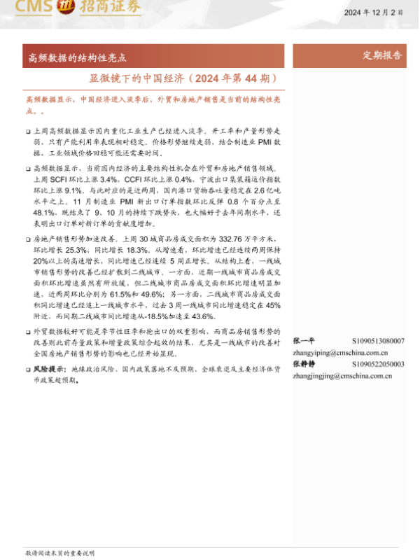 【海通证券】【20241202】显微镜下的中国经济(2024年第44期):高频数据的结构性亮点-38页
