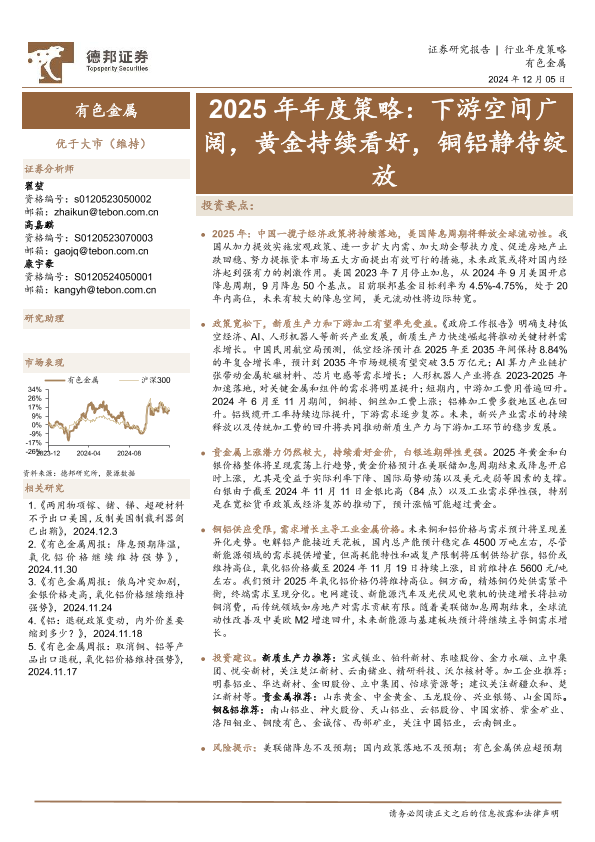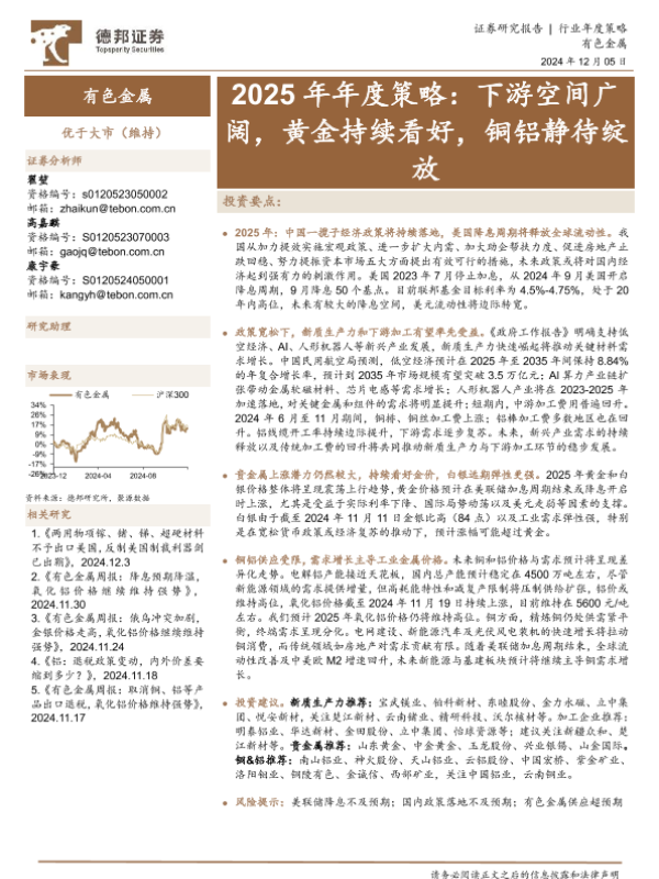 【德邦证券】【20241205】有色金属行业2025年年度策略:下游空间广阔,黄金持续看好,铜铝静待绽放-46页