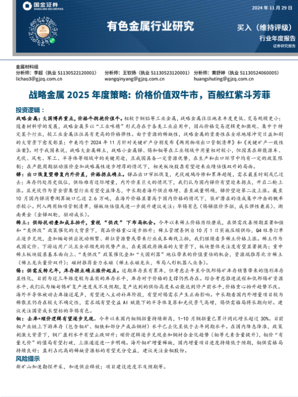 【国金证券】【20241129】有色金属行业战略金属2025年度策略:价格价值双牛市,百般红紫斗芳菲-28页