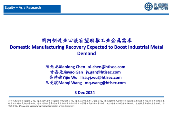 【海通国际】【20241203】有色金属行业:国内制造业回暖有望助推工业金属需求-40页