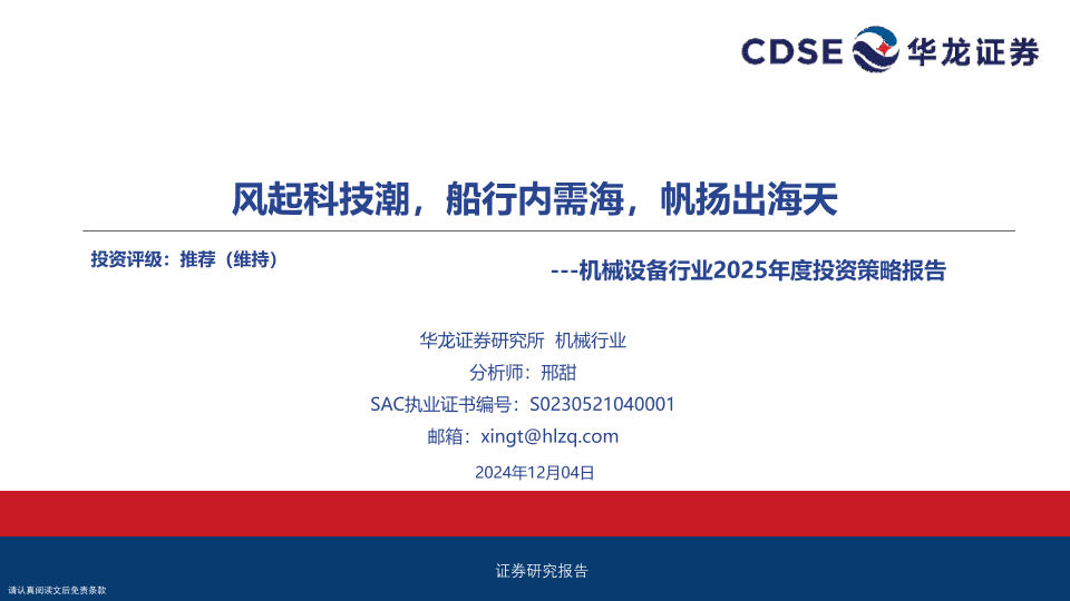 【华龙证券】【20241204】机械设备行业2025年度投资策略报告:风起科技潮,船行内需海,帆扬出海天-31页