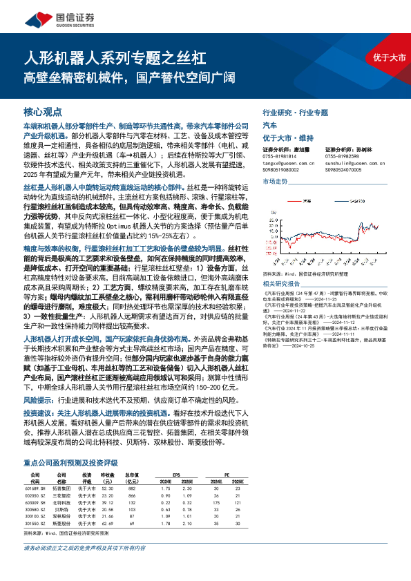 【国信证券】【20241204】汽车行业人形机器人系列专题之丝杠:高壁垒精密机械件,国产替代空间广阔-73页