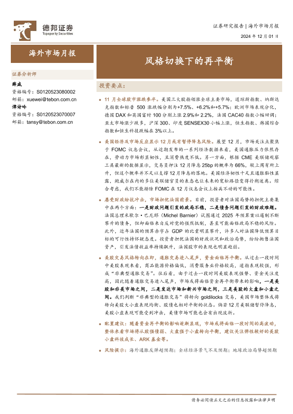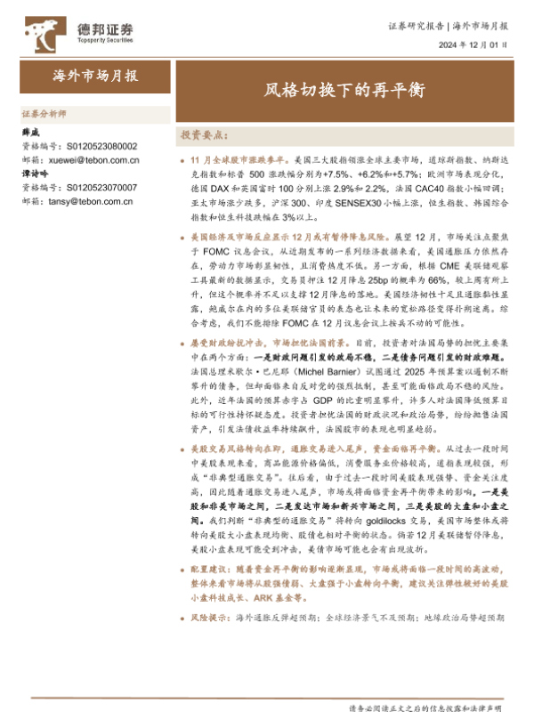【德邦证券】【20241201】海外市场月报:风格切换下的再平衡-10页