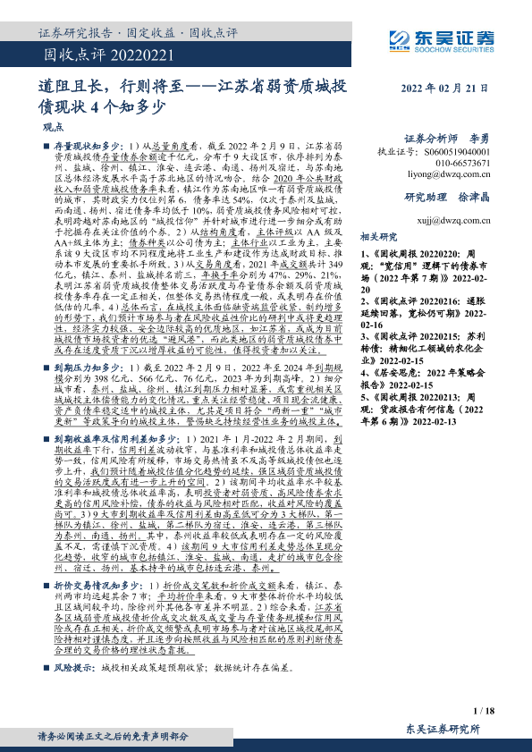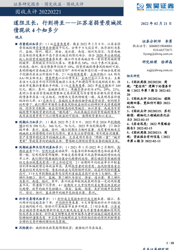 【东吴证券】【20220221】固收点评:江苏省弱资质城投债现状4个知多少,道阻且长,行则将至-18页
