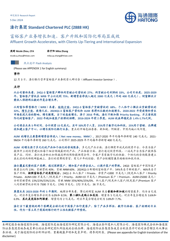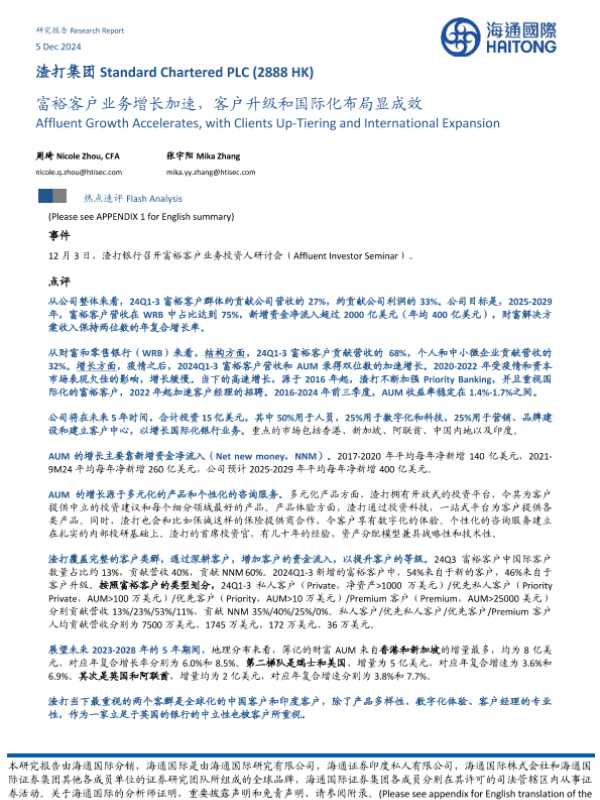 【海通国际】【20241205】渣打集团(2888.HK)富裕客户业务增长加速,客户升级和国际化布局显成效-14页