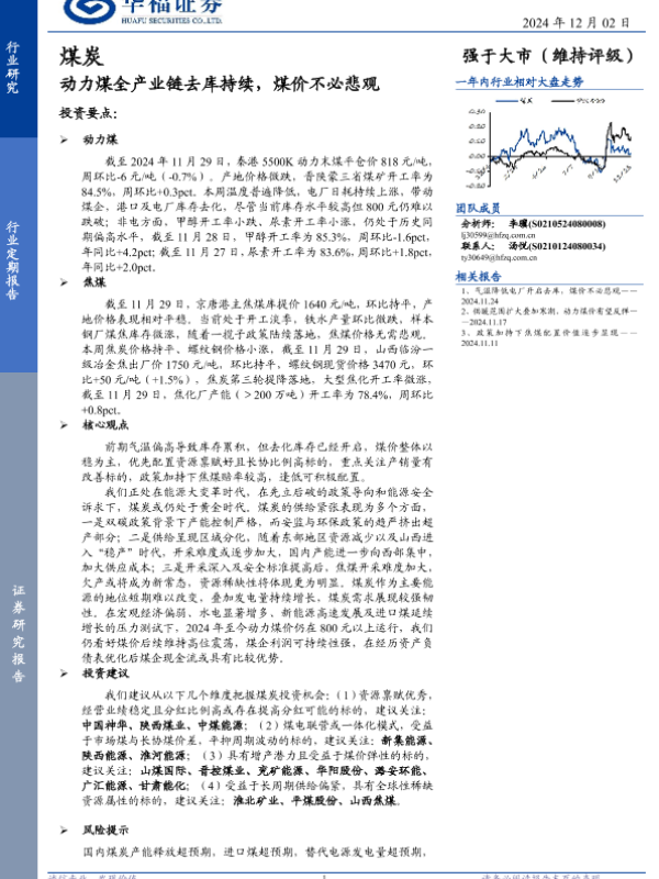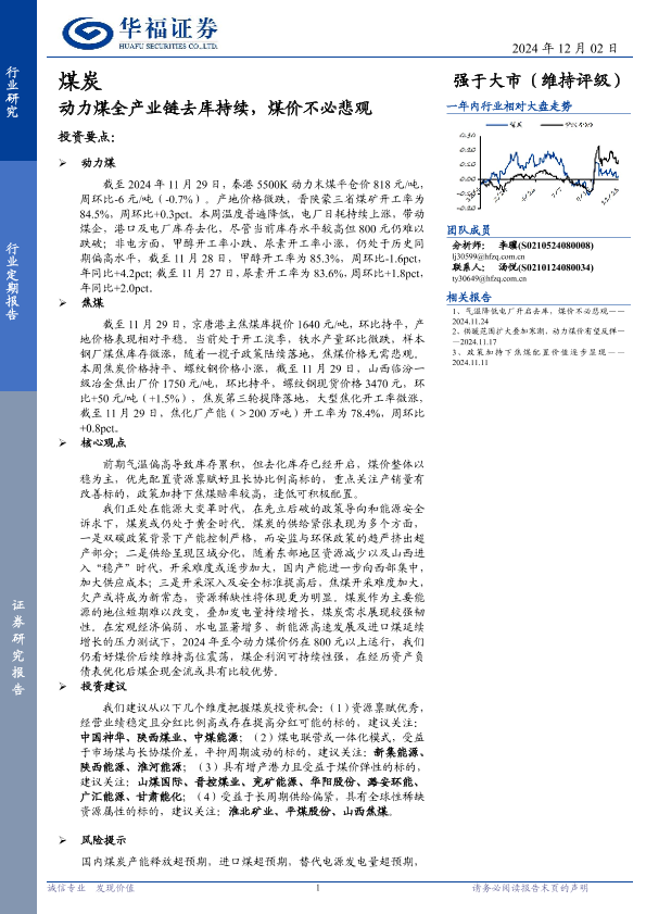 【华福证券】【20241202】煤炭行业定期报告:动力煤全产业链去库持续,煤价不必悲观-21页