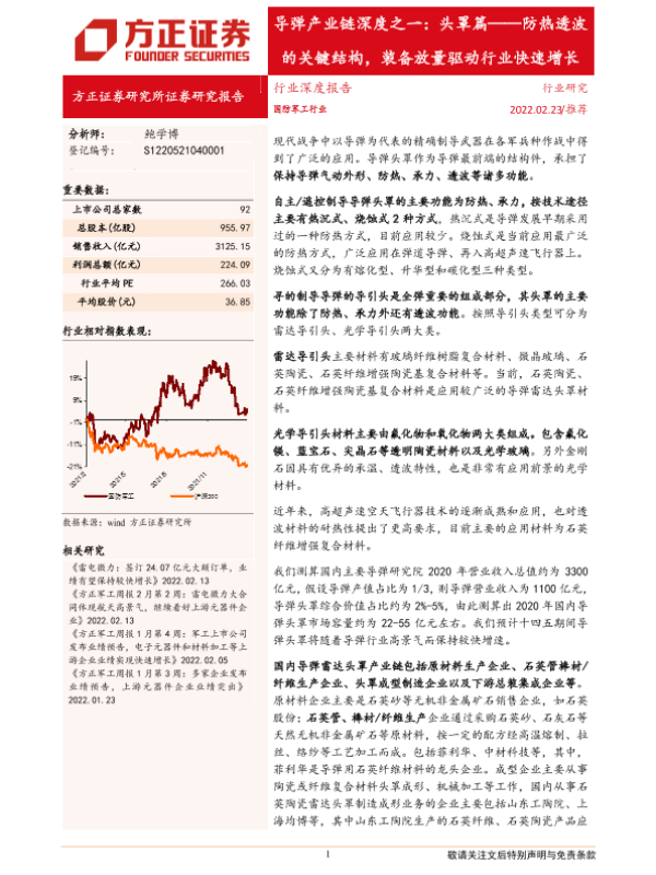 【方正证券】【20220223】国防军工行业导弹产业链深度之一:头罩篇,防热透波的关键结构,装备放量驱动行业快速增长-36页