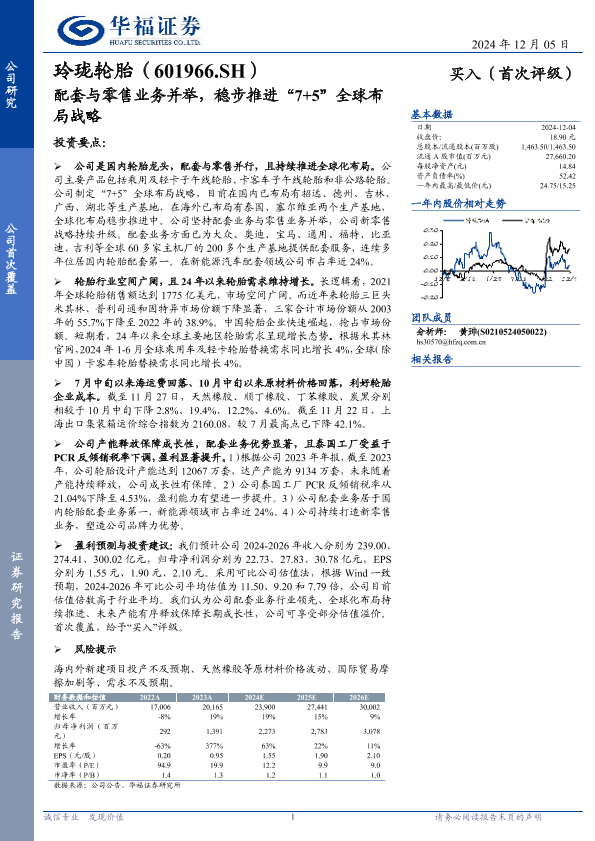 【华福证券】【20241205】玲珑轮胎(601966)配套与零售业务并举,稳步推进“7+5”全球布局战略-26页