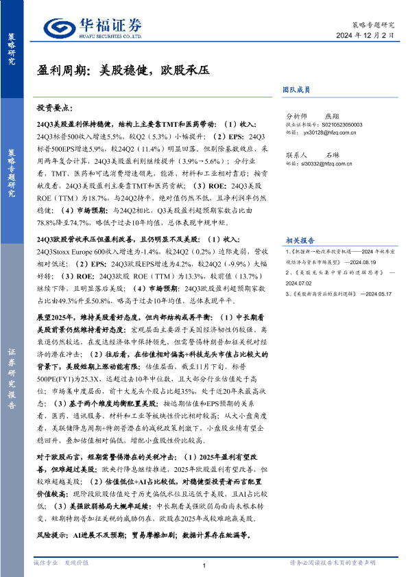 【华福证券】【20241202】盈利周期:美股稳健,欧股承压-22页