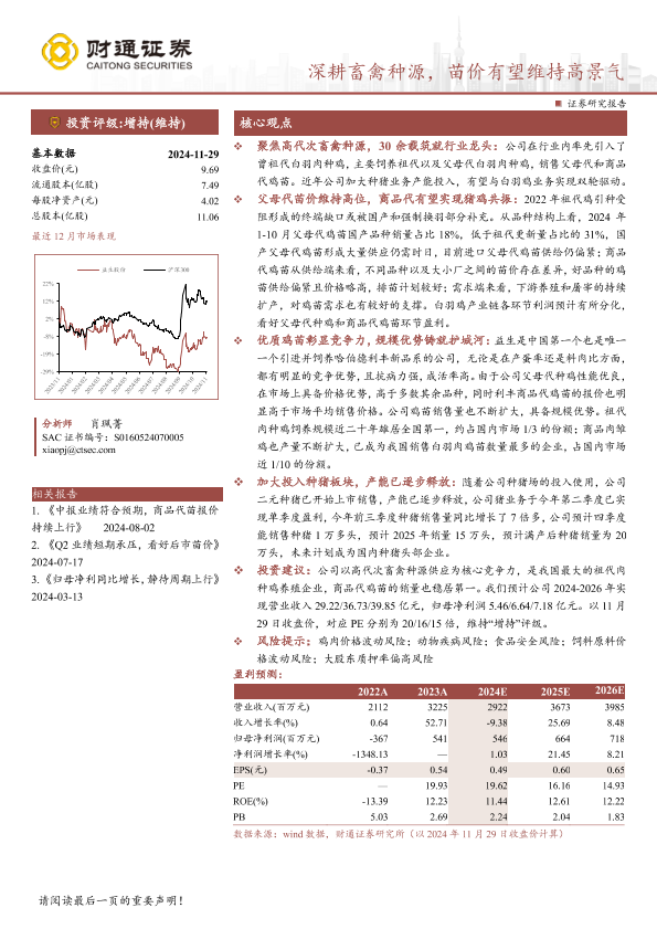 【财通证券】【20241130】益生股份(002458)深耕畜禽种源,苗价有望维持高景气-22页