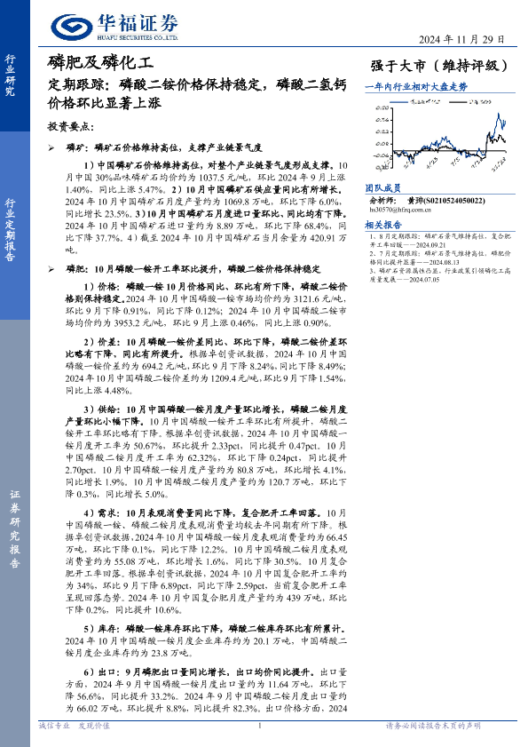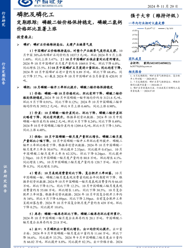 【华福证券】【20241129】磷肥及磷化工行业定期跟踪:磷酸二铵价格保持稳定,磷酸二氢钙价格环比显著上涨-13页