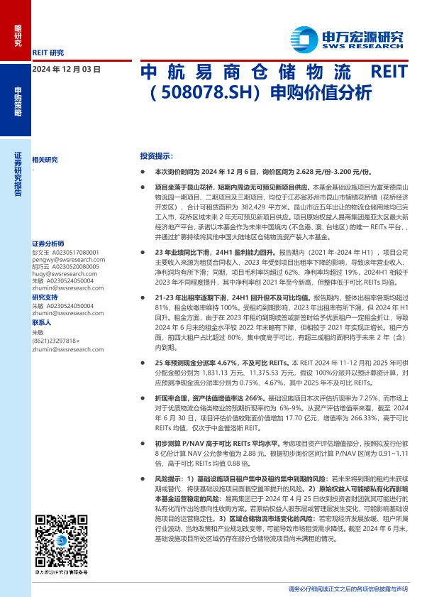 REITs REITS 收益分析 昆山花桥 物流仓储