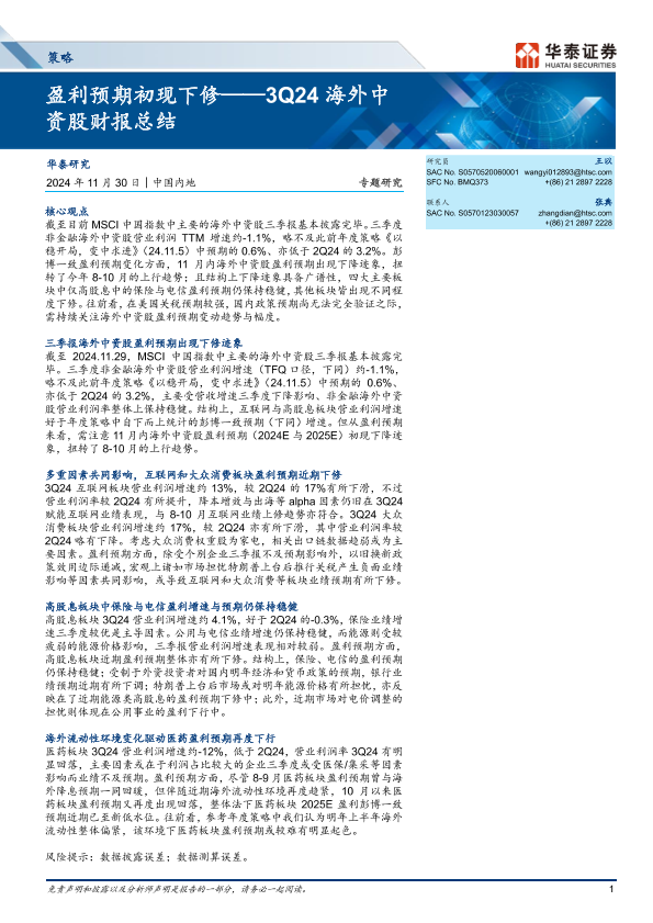【华泰证券】【20241130】策略专题研究:3Q24海外中资股财报总结,盈利预期初现下修-11页