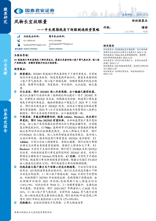 【国泰君安证券】【20241202】纺织服装行业中长周期视角下纺服制造投资策略:风物长宜放眼量-25页