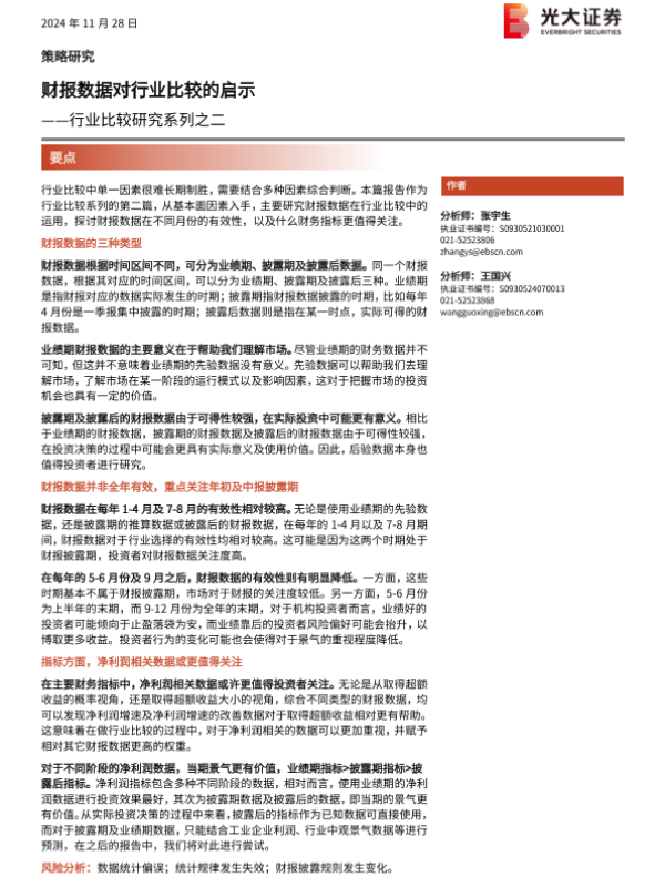 【光大证券】【20241128】行业比较研究系列之二:财报数据对行业比较的启示-12页