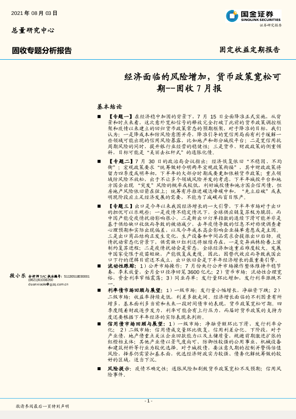 【国金证券】【20210803】固收7月报:经济面临的风险增加,货币政策宽松可期-22页
