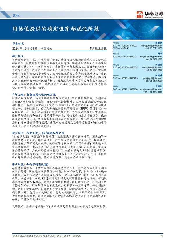 【华泰证券】【20241203】资产配置月报:用估值提供的确定性穿越混沌阶段-27页