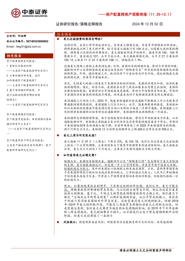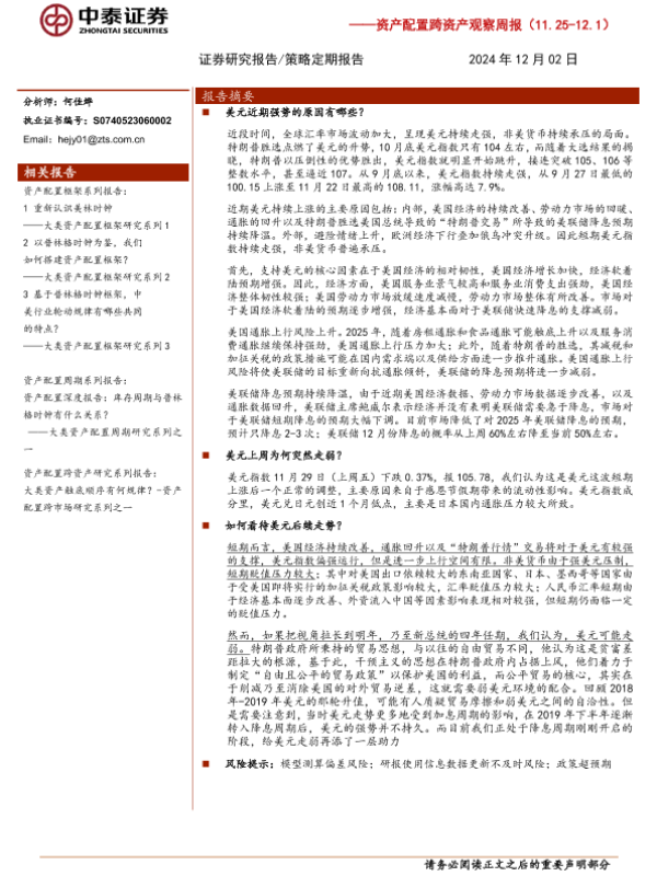 【中泰证券】【20241202】资产配置跨资产观察周报:美元呈现“过山车”走势,如何看待后续?-19页