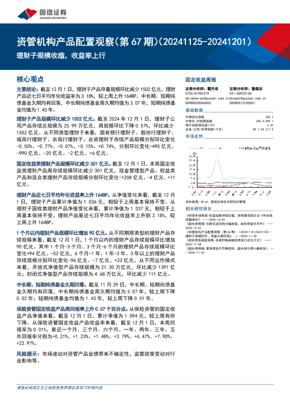 【国信证券】【20241204】资管机构产品配置观察(第67期):理财子规模收缩,收益率上行-15页