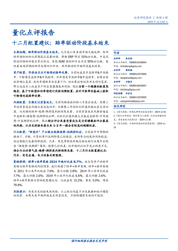 【国盛证券】【20241202】量化点评报告:十二月配置建议,赔率驱动阶段基本结束-18页