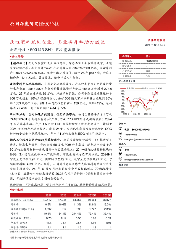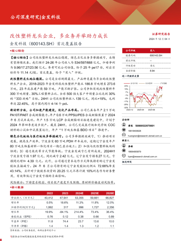 【西部证券】【20241204】金发科技(600143)首次覆盖报告:改性塑料龙头企业,多业务并举助力成长-34页