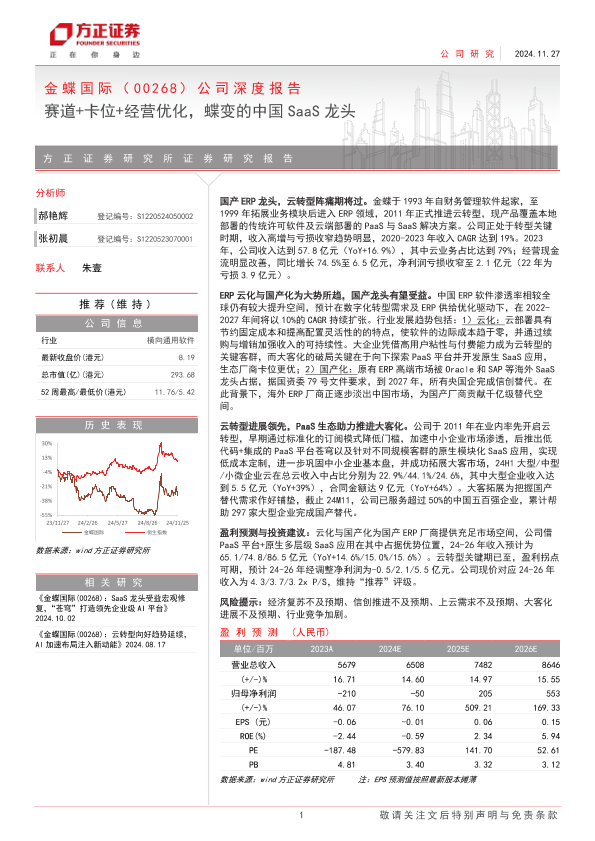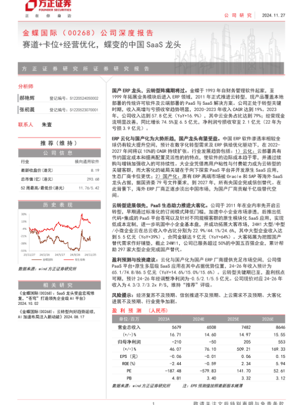 【方正证券】【20241127】金蝶国际(0268.HK)公司深度报告:赛道+卡位+经营优化,蝶变的中国SaaS龙头-31页