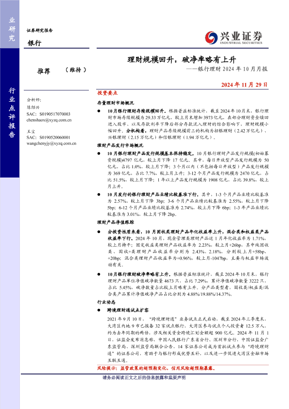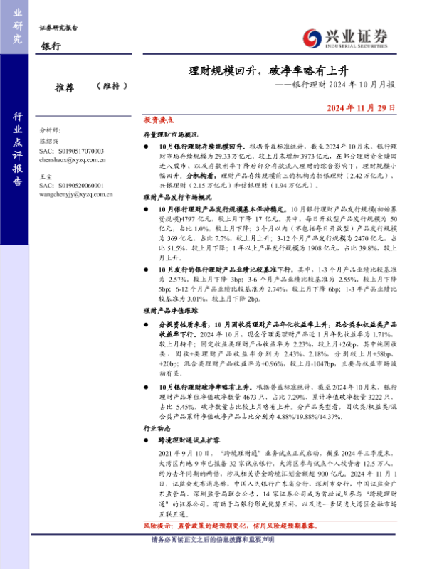 【兴业证券】【20241129】理财规模回升,破净率略有上升——银行理财2024年10月月报-12页