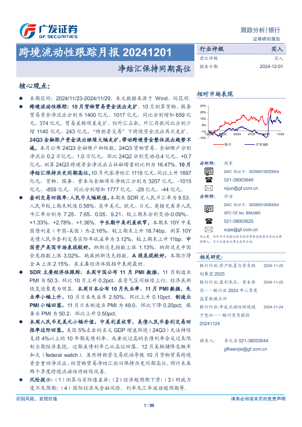 【广发证券】【20241201】银行业跨境流动性跟踪月报:净结汇保持同期高位-36页