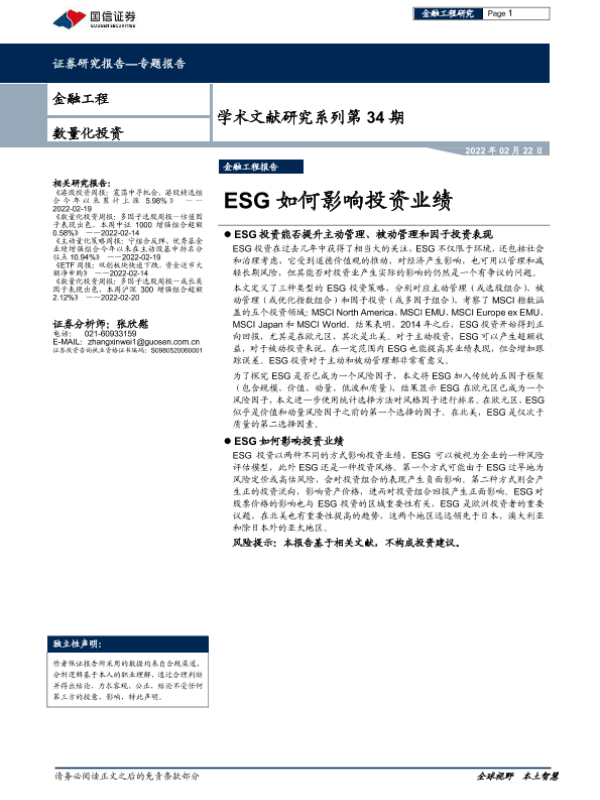 【国信证券】【20220222】学术文献研究系列第34期:ESG如何影响投资业绩-16页