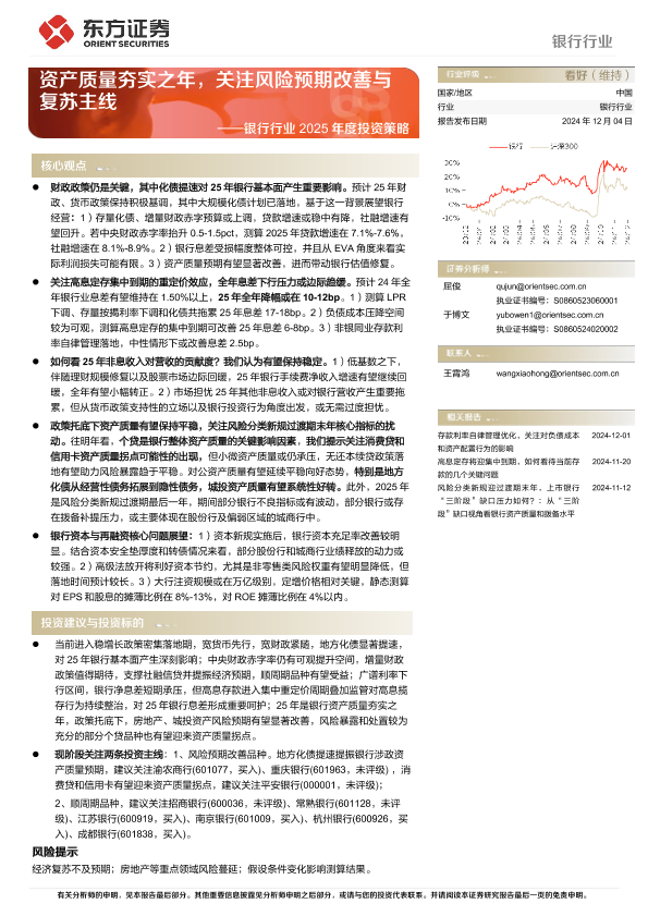 【东方证券】【20241204】银行行业2025年度投资策略:资产质量夯实之年,关注风险预期改善与复苏主线-32页
