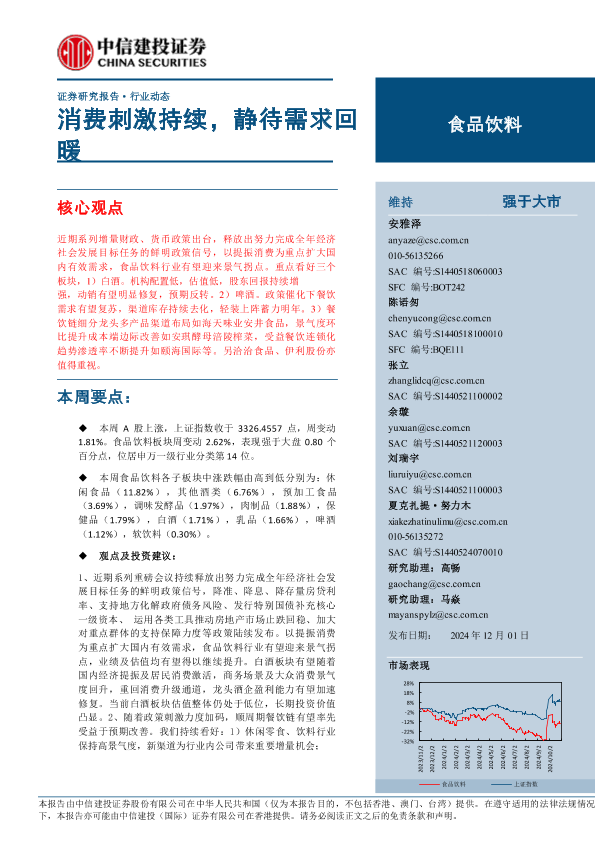【中信建投证券】【20241201】食品饮料行业动态:消费刺激持续,静待需求回暖-18页