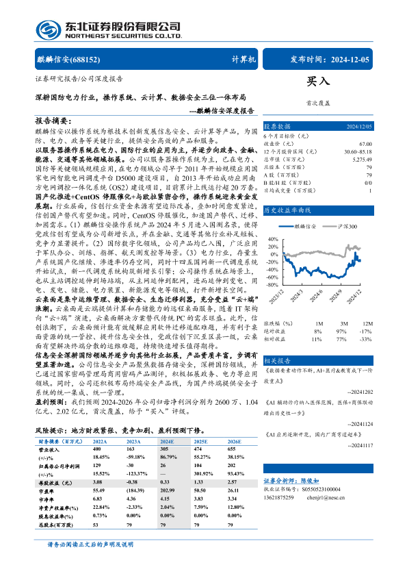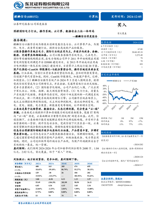 【东北证券】【20241205】麒麟信安(688152)深度报告:深耕国防电力行业,操作系统、云计算、数据安全三位一体布局-32页