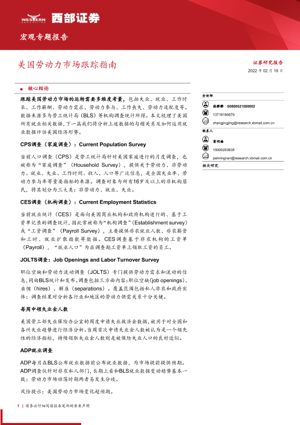 【西部证券】【20220219】宏观专题报告:美国劳动力市场跟踪指南-18页