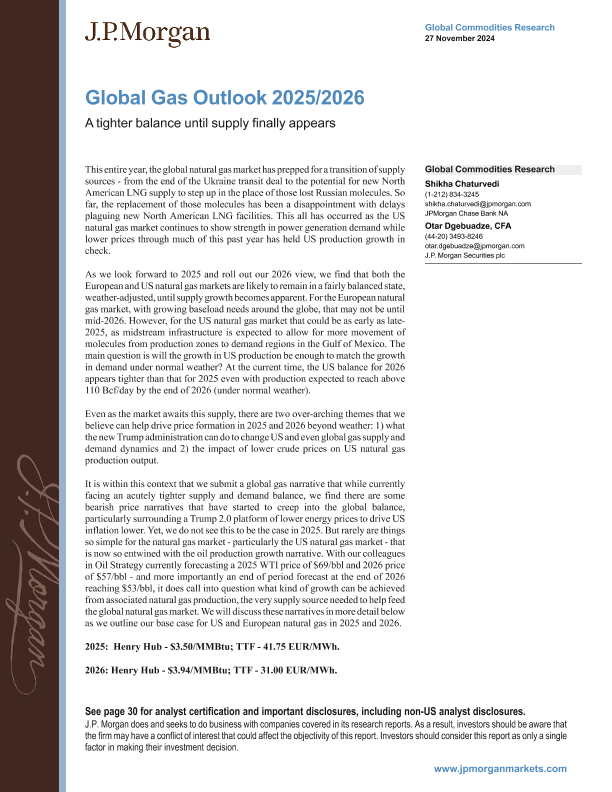 【J.P. Morgan】【20241127】Global Gas Outlook 2025/2026 A tighter balance until supply finally appears-34页