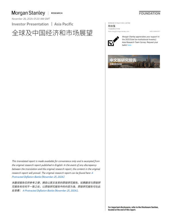 【Morgan Stanley】【202411】全球及中国经济和市场展望-52页