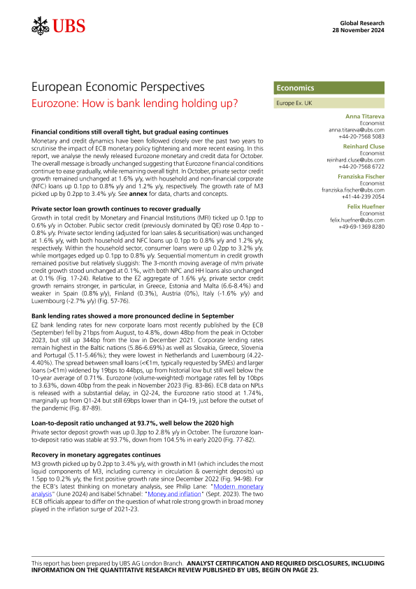 【UBS AG London Branch】【20241128】Eurozone How is bank lending holding up?-26页
