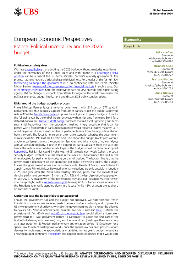 【UBS Europe SE】【20241128】European Economic Perspectives France Political uncertainty and the 2025 budget-15页
