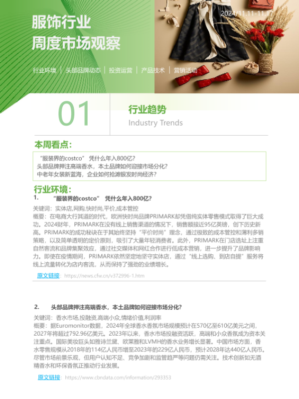 周度报告 市场观察 时尚品牌 服饰行业 消费趋势