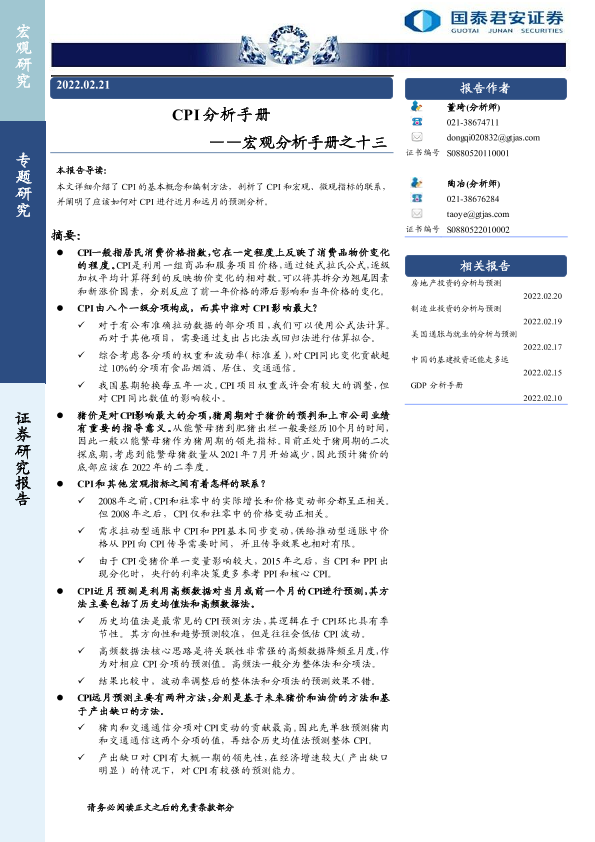 【国泰君安证券】【20220221】CPI分析手册——宏观分析手册之十三-28页